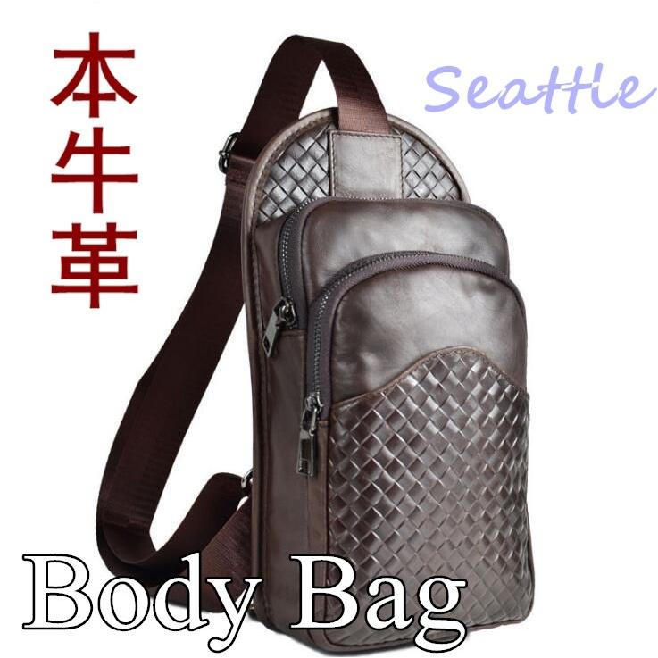 Qoo10 ボディバッグ 本革 レザー カジュアル メンズバッグ シューズ 小物
