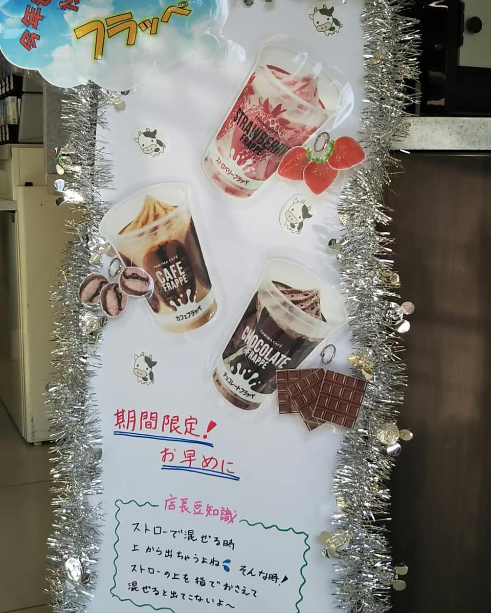 May 22, カフェフラッペ以外のフラッペは ミルク のボタンを押します。 カフェフラッペはコーヒー のボタンなので要注意です! ④よくかき混ぜる 良くかき混ぜたら、フタをかぶせて完成です。 太いストローをもらうのを忘れずに! ファミマフラッペ新作一覧ファミマチョコミントフラッペいつまで販売()?カロリー・作り方・口コミも調査! 数量限定フラッペ たべる牧場ミルクフラッペ 6月27日〜再販 値段:3円 カロリー:284Kcal たべる牧場ミルクフラッペは「ミルク・生クリームの美味しさがワンランク上」という印象。カフェフラッペ14 全国 10 25 269 008 乳成分 ゴディバ監修 チョコレートフラッペ 全国 37 71 422 017 乳成分、大豆 リッチフラッペストロベリー17 全国 2130 31 45 411 0